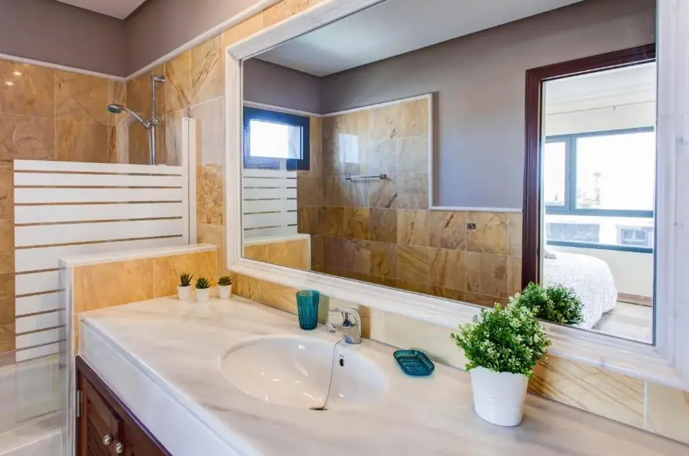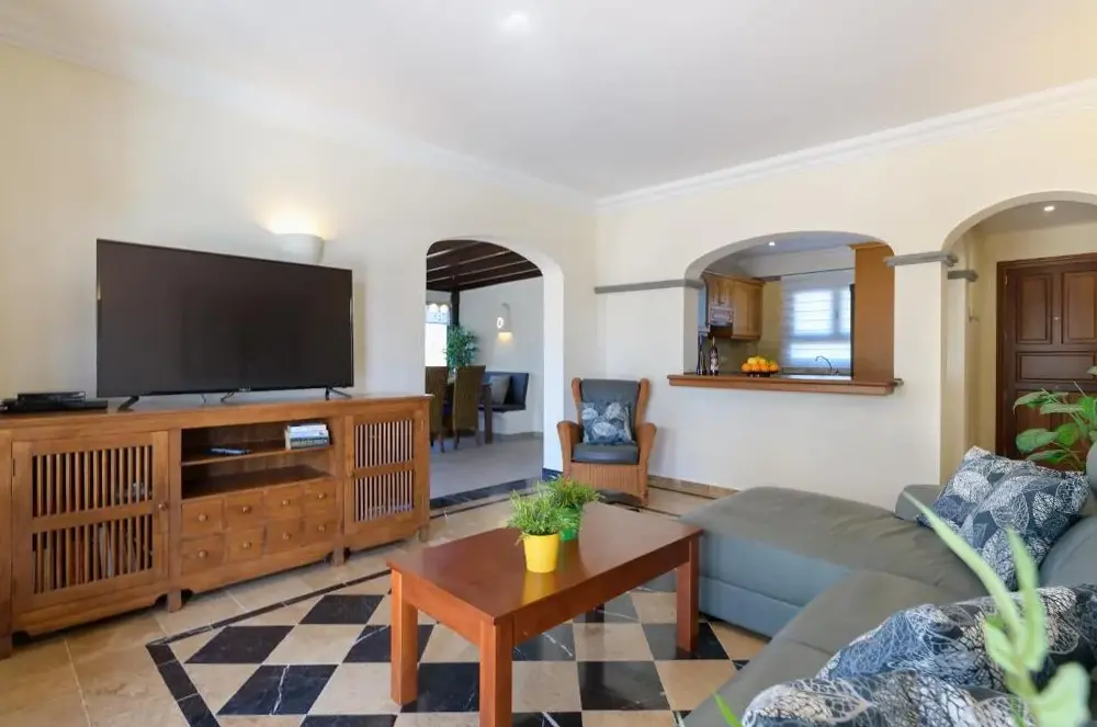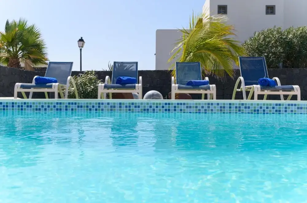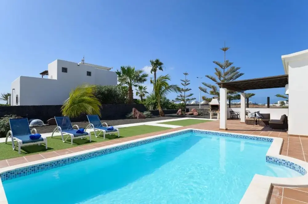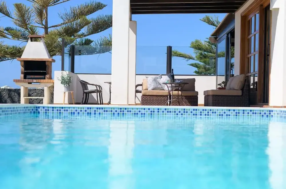 Basen miał dziwny kształt z zanurzeniem w środku i stromych stronach.Nie podobało mi się tak bardzo.Willa znajduje się w kompleksie willi, wszystkie całkiem blisko siebie.Chociaż wydawało się to prywatnie, nie zarezerwujemy tego ponownie